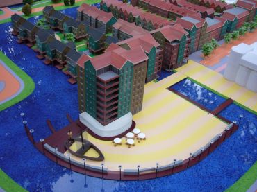 Golfbaan met vrijstaande woningen, appartemeneten en hotel.