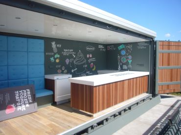 Ook in 2 zeecontainers hun interieur gebouwd.