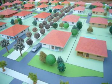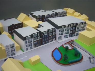 Volume blokken beplakt met gekleurde gevels.